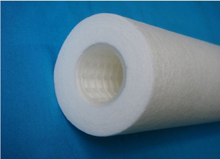 PP棉濾芯:采用無毒無味的聚丙烯顆粒,經加熱、熔融、紡絲、牽引、接收等工序纏繞粘結而成的管狀濾芯。濾芯的結構由外向內,越靠近濾芯內層,孔徑越小,過濾精度越高。聚丙烯棉濾芯具有流量大、耐腐蝕、耐高壓、成本低等特點,主要用于阻隔水中的鐵銹、泥沙、懸浮物等大顆粒物。